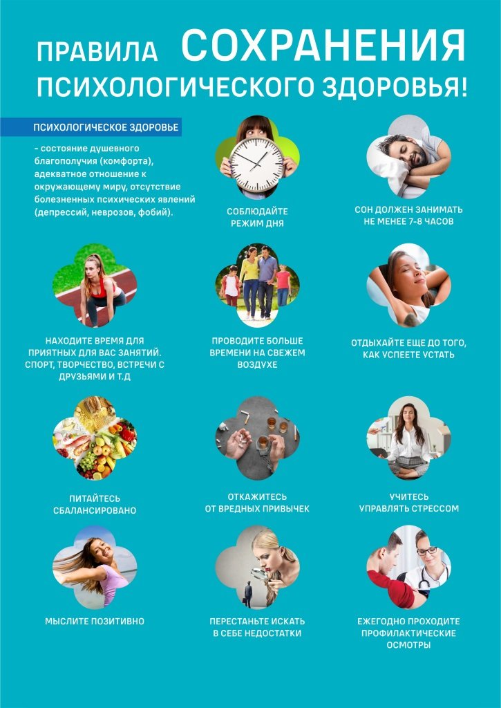 - Поддерживайте режим дня.Регулярный сон, сбалансированное питание и физическая активность укрепляют психику и повышают устойчивость к стрессам.